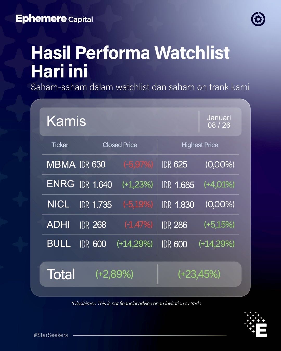 Dan secara risiko jika masuk diharga sekarang bisa dibilang worth it dalam jangka panjang. Disisi lainnya $ADRO dan $BULL sedang manggung. Hati2 market sedang High Volatile!