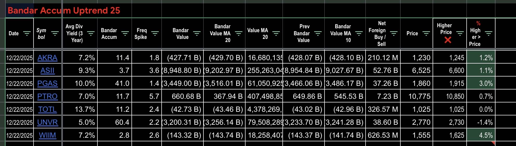 Kita tunggu % Higher to Price sewaktu closing nanti jam 16.00 untuk cross-check hasilnya yang selama ini fitur screener StockBit tidak mengecewakan.