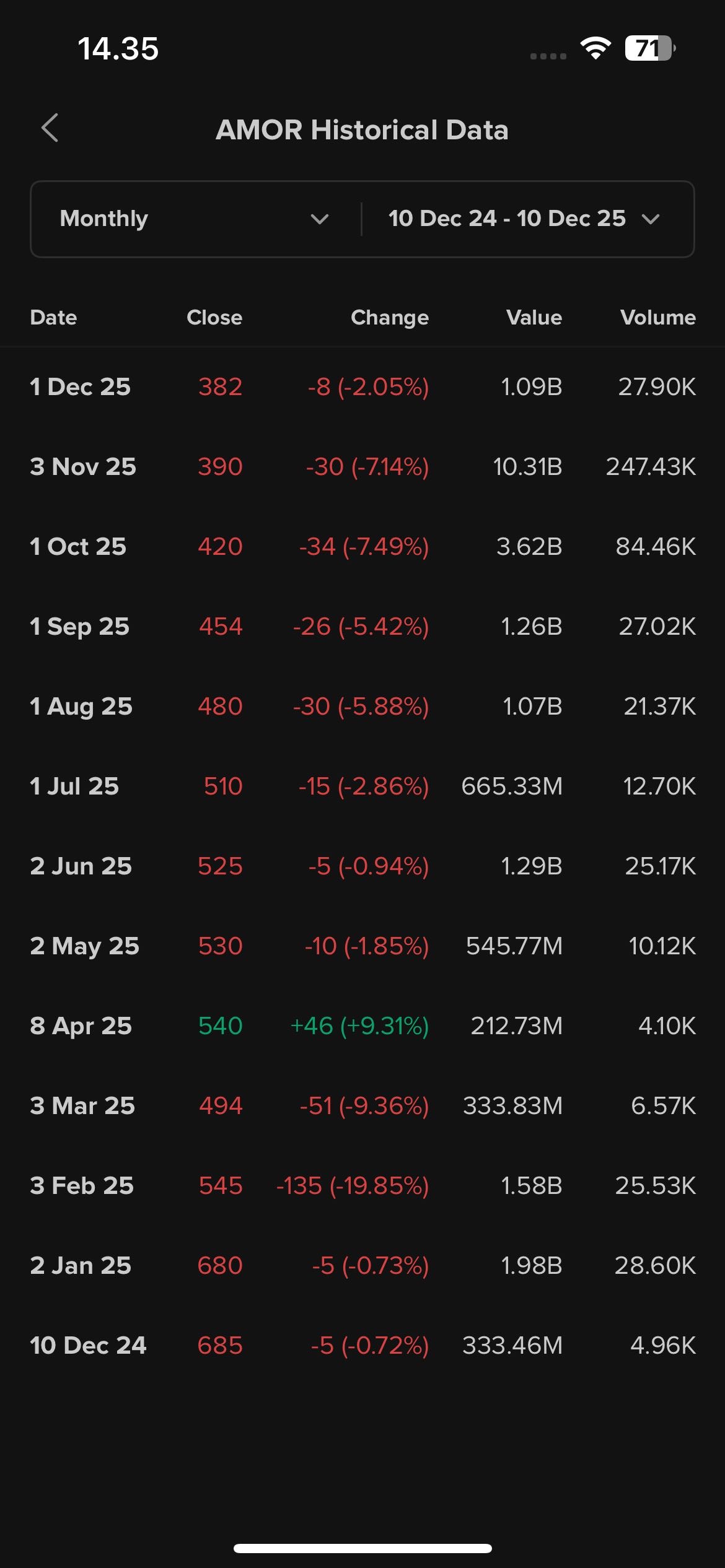 $AMOR. ini duit ketahan tapi sempet dapet deviden , Mayan bisa buat beli madu kelapa ijo sama dupa buat mammon π