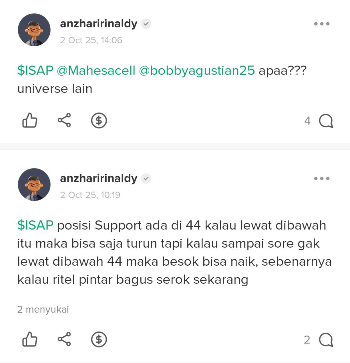 @anzharirinaldy mending kasian sama orang yg disuruh serok $ISAP skrg pricenya di 27 tuu