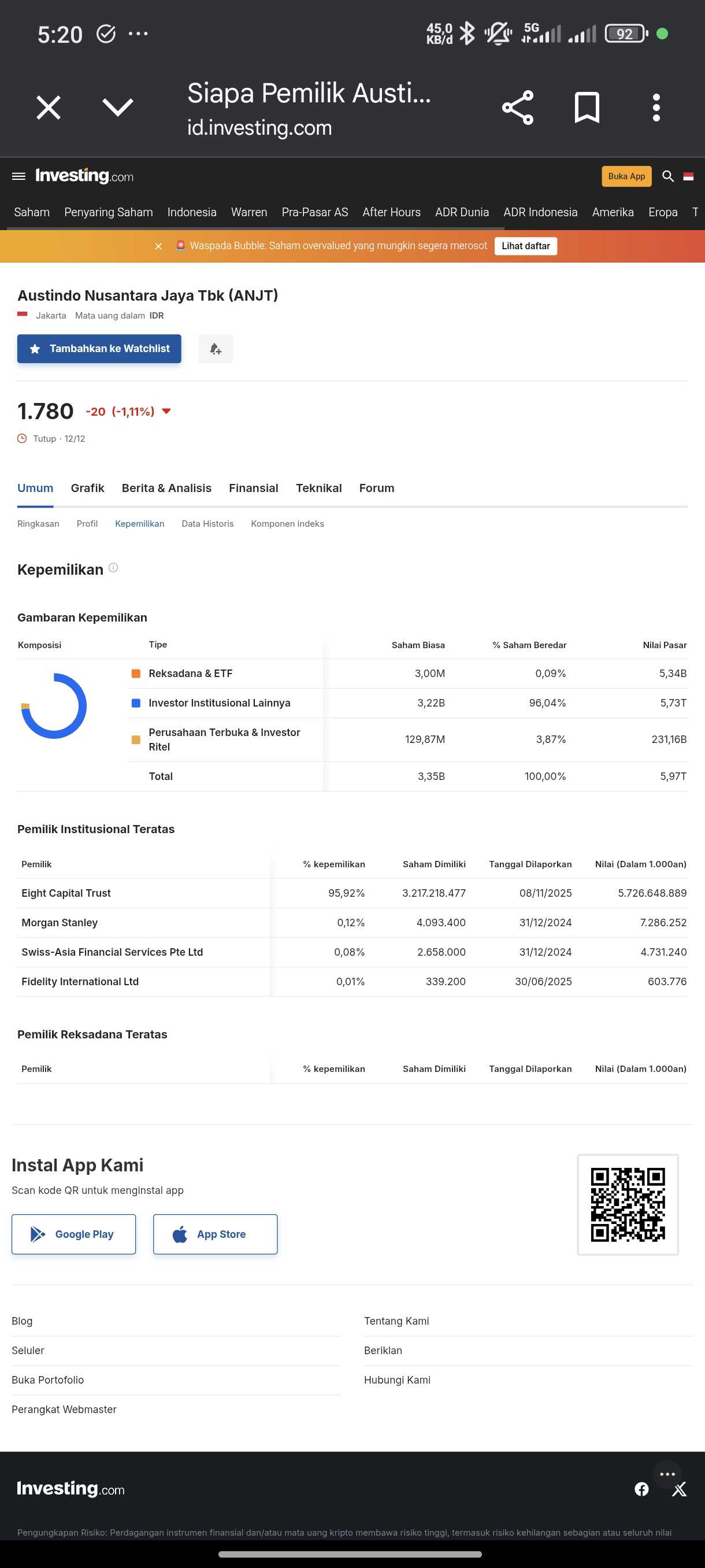 Tapi malam ini cuma mau kasih info dikit. Silahkan di cari di google. Siapa kepemilikan institusi pada ANJT selain pengendali.