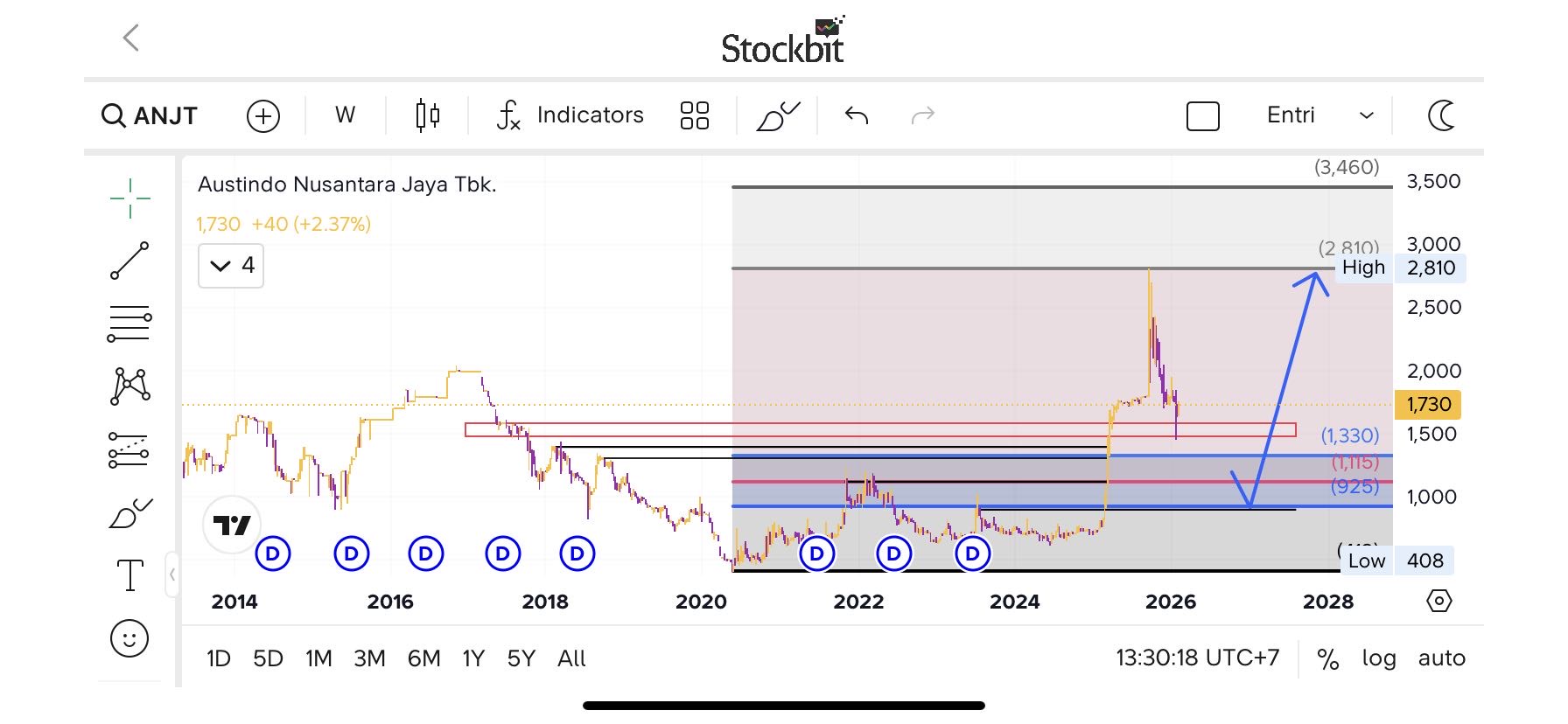 🔼 $ANJT gap up ke 1730 (+30 / +1.76%) dari 1700