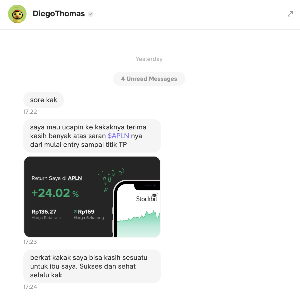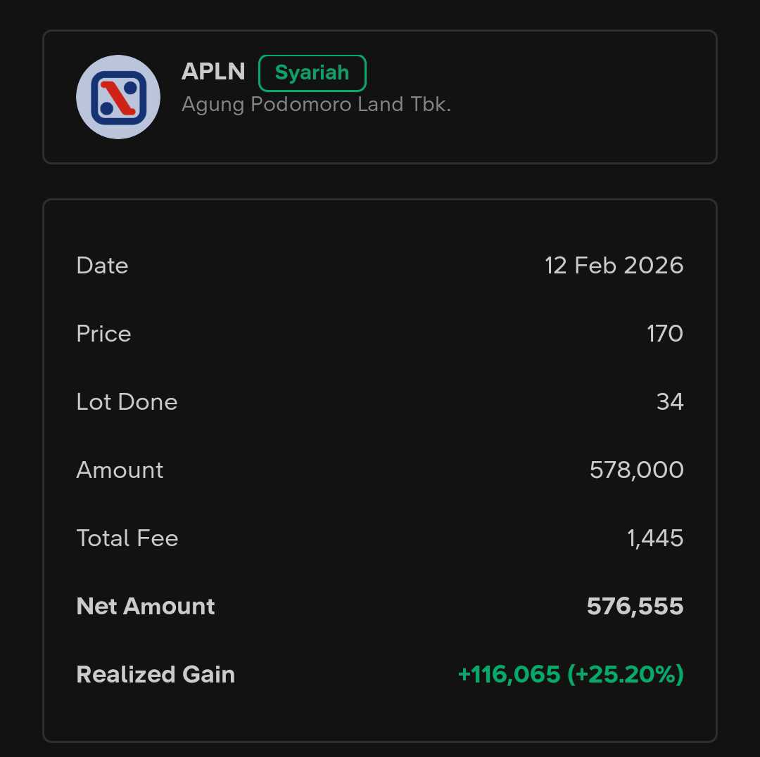 $APLN senang bisa membantu investor untuk dapat cuan, kuncinya itu disiplin TP & CL kalau main saham momentum. Nanti kita akan masuk lagi di $APLN, stay tune