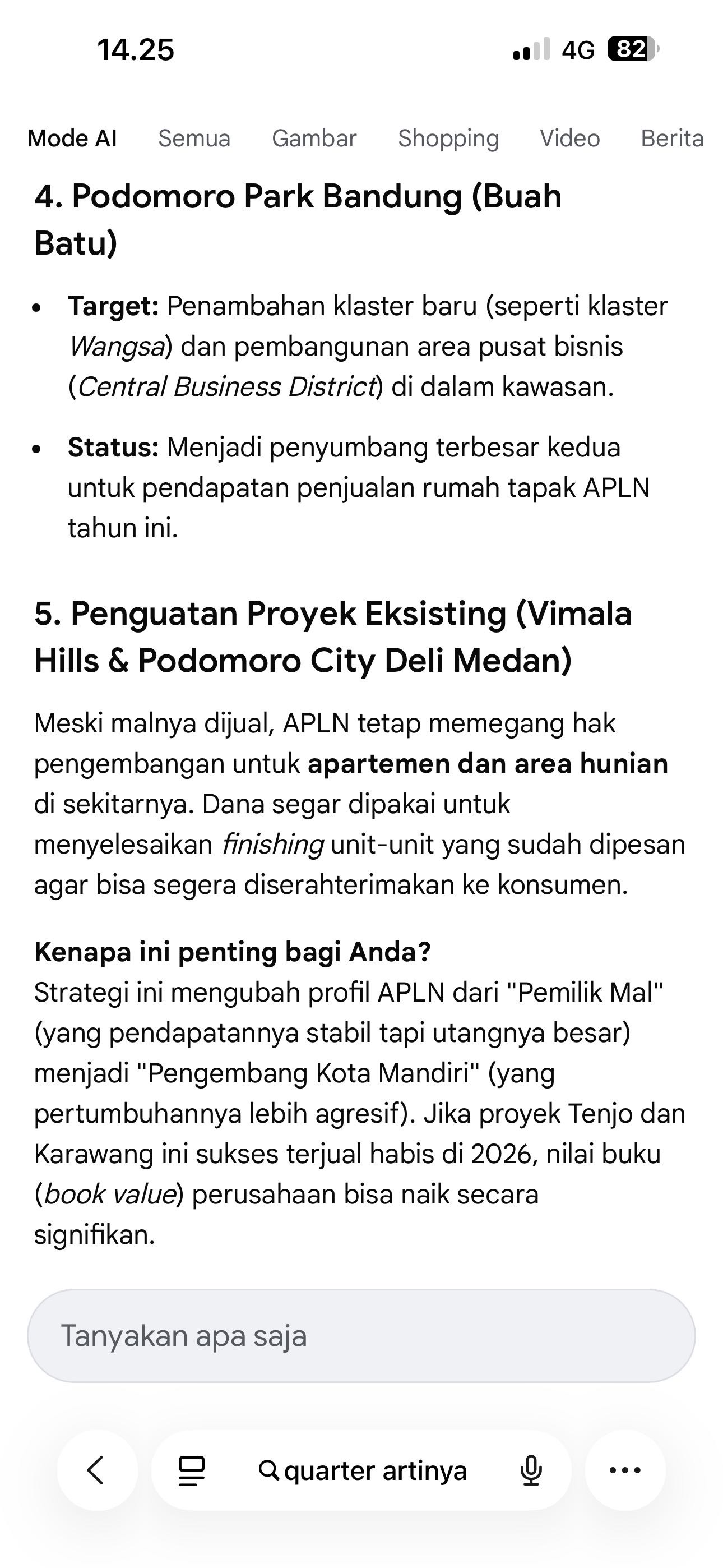 Sisi baik dari APLN tetap ada, karena kalau suatu hari ada pemulihan izin yang jelas dan bisa dieksekusi, persediaan itu bisa berubah jadi mesin pendapatan yang besar. Syaratnya ketat, harus ada kepastian regulasi dan administrasi, bukan sekadar optimisme manajemen. Dari data yang dibawa, syarat itu belum bisa dibilang terpenuhi karena upaya hukum atau administratif masih berjalan dan hasil akhirnya belum mengembalikan kepastian proyek. Jadi kuncinya bukan di narasi, tapi di status izin yang benar-benar pulih.