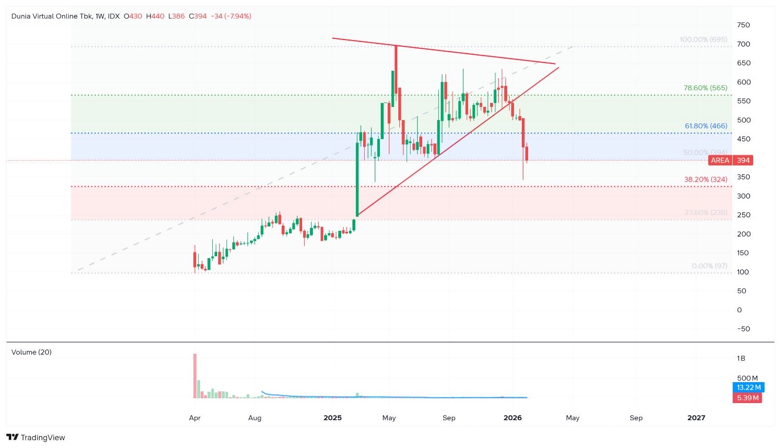 Di daily chart Anda, 400ā450 adalah area support minor pertama di bawah 560 yang dekat dengan level āweak lowā 347k volume yang sudah Anda tandai; secara psikologi, itu juga ~10ā15% di atas angka 350 yang sering jadi psychological pit stop sebelum market menguji 200āan.