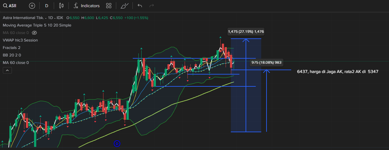 Astra ini menarik, sahamnya di jagain AK, klo ngitung barang, dia udah masuk duit 2-3 Trilun, dengan avg harga di 5347.