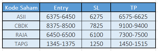 Dari 4 saham rekomendasi baru 1 yang Hit TP, 3 saham lainnya masih running profit semoga bisa hit TP juga