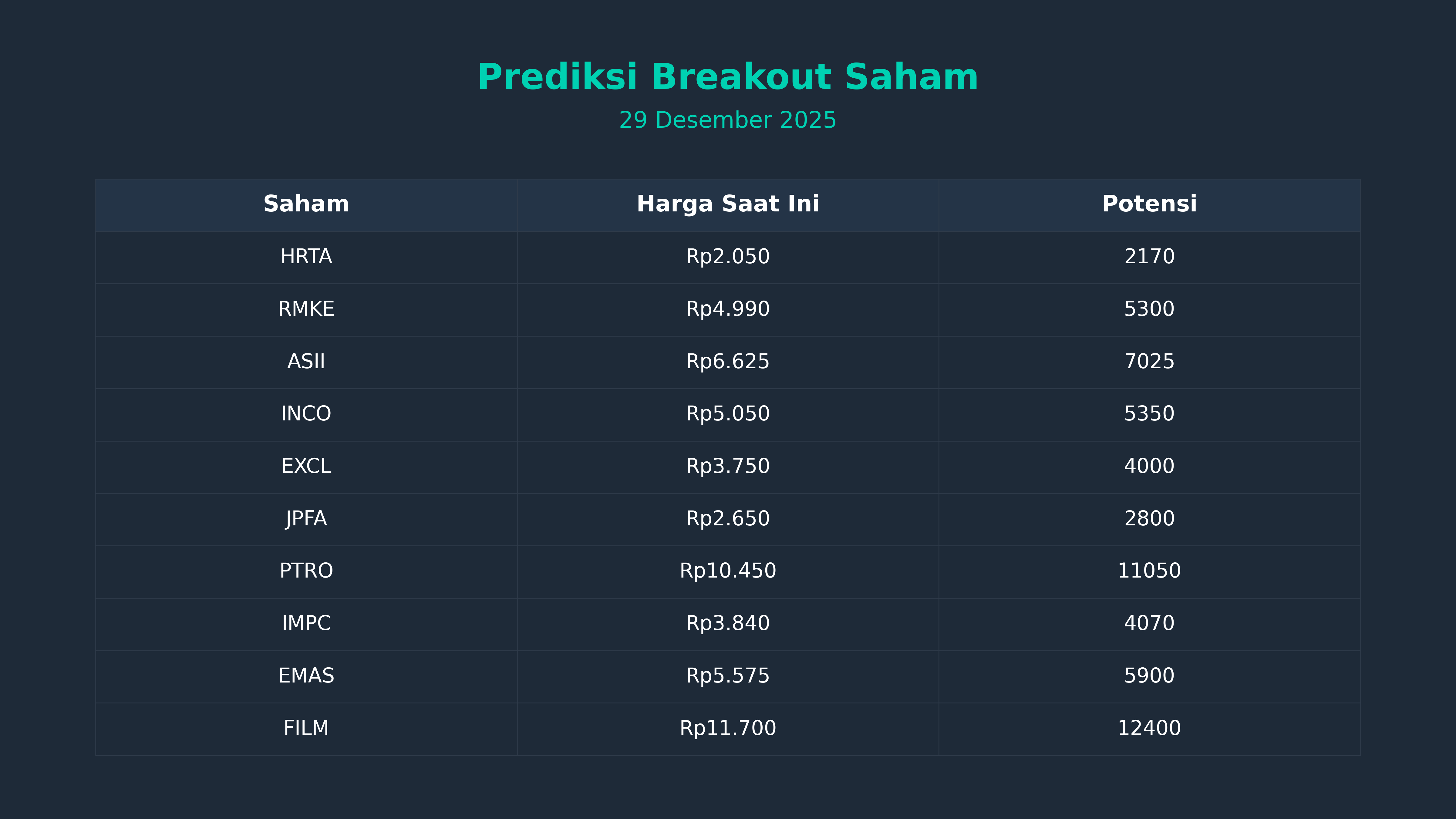 Saham Liquid ber-Potensi Breakout 29 Desember 2025