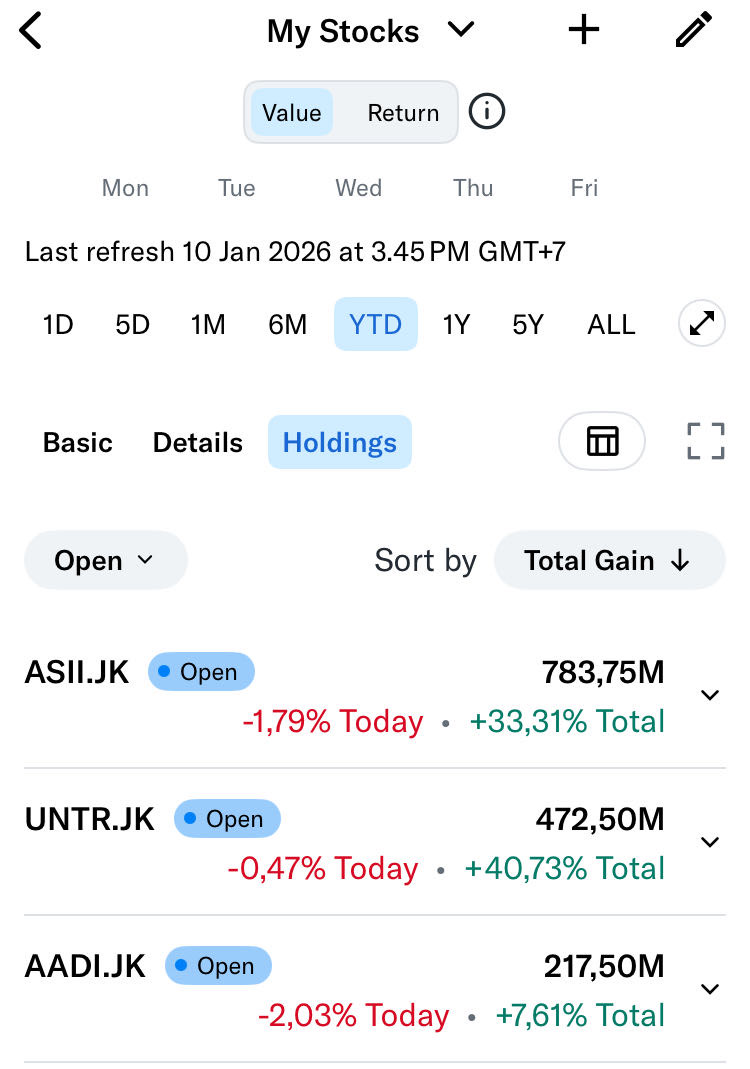 @EnryuRoe ini contoh punyaku hold lamaaa hijau semua $ASII $UNTR $AADI 😁 tapi ada juga hold lama merah misalnya BMRI dan BBRI😮💨. Biarpun merah, saham bluechip tetap kasih dividen. Jadi tak perlu takut hold lama asal pakai uang dinginnn ya. Jangan pakai uang panas utk hold nanti bisa terbakar.