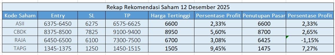 Halo kawan, saya mau share perkiraan saham yang bakal naik di 12 Desember 2025.