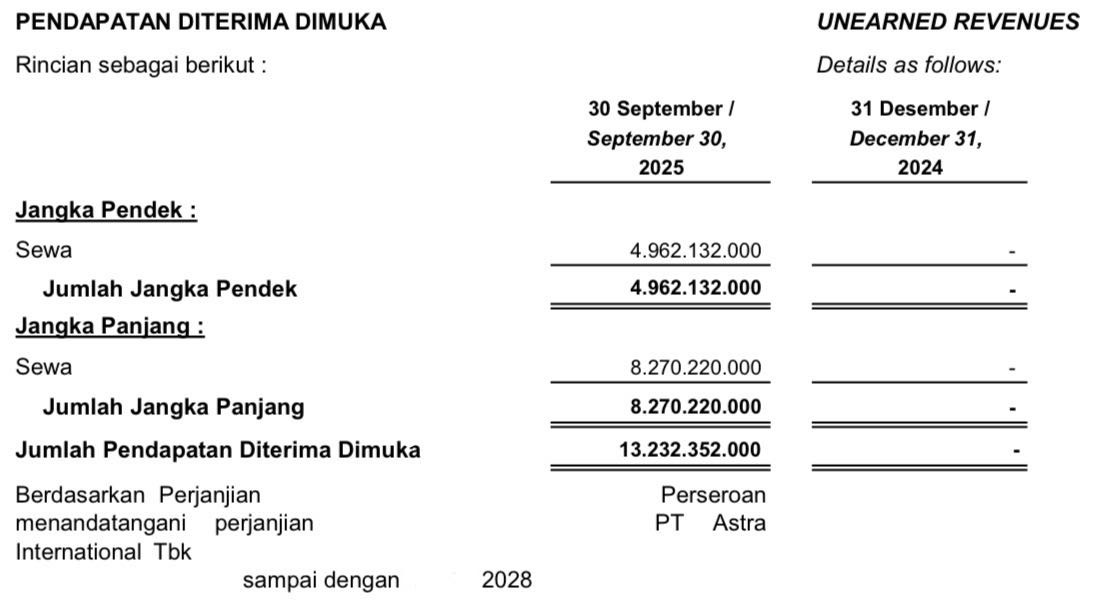 jika Astra Group semakin berjaya, siapa tahu pendapatan diterima dimuka XXXX akan ikut double karena XXXX memberikan service yang memuaskan kepada Jardine.