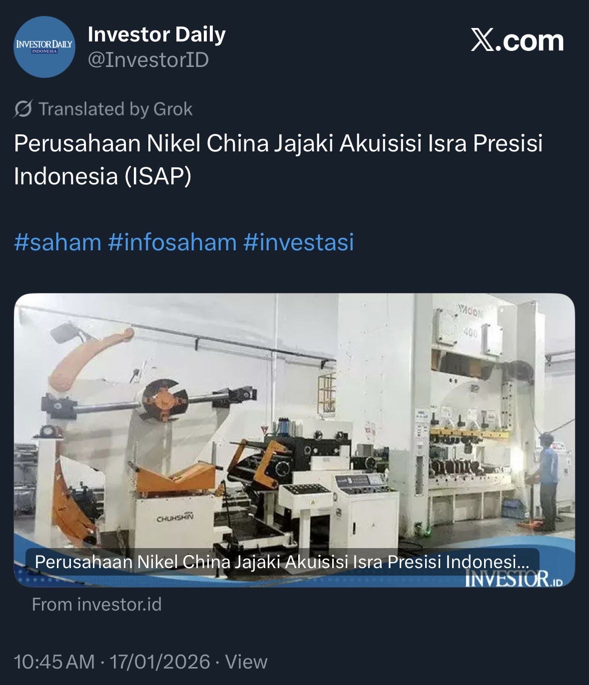 $ISAP perusahaan didikan $ASII masuk radar foreign investor untuk jalanin bisnis $NICKEL dan EV, what a moment! congrats yg punya barang, let the chef cook!