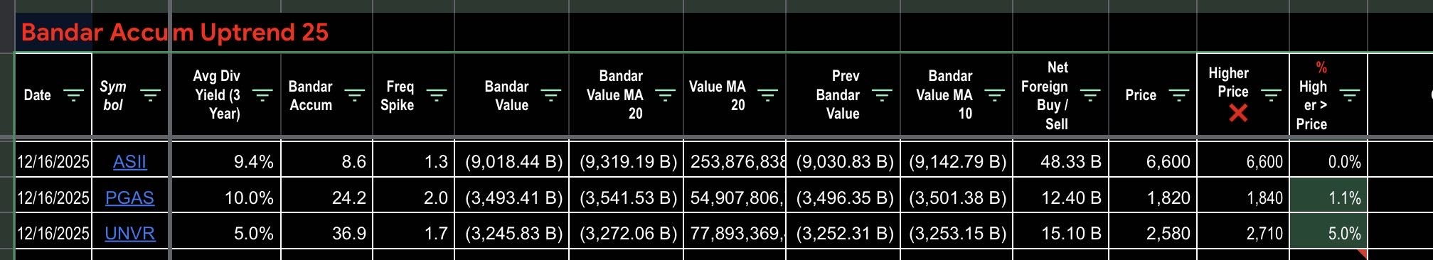 Kita tunggu % Higher to Price sewaktu closing nanti jam 16.00 untuk cross-check hasilnya yang selama ini fitur screener StockBit tidak mengecewakan.