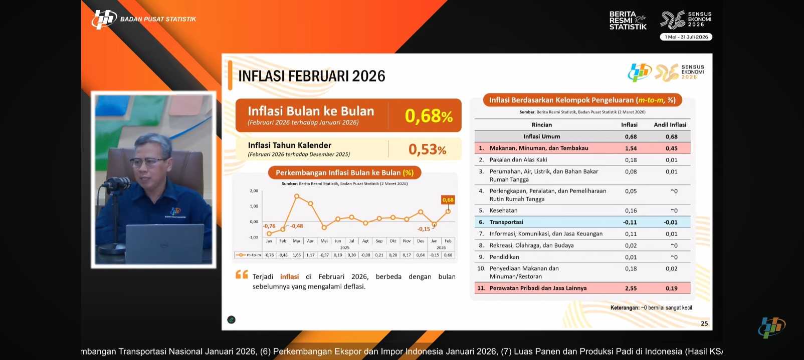 Rilis data inflasi Indonesia Feb 2026 oleh BPS