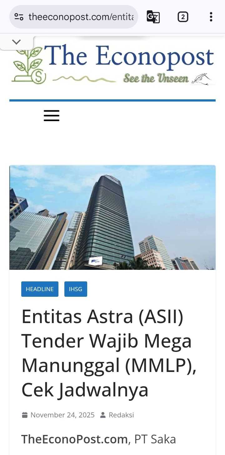 Entitas Astra ($ASII) Tender Wajib Mega Manunggal ($MMLP), Cek Jadwalnya