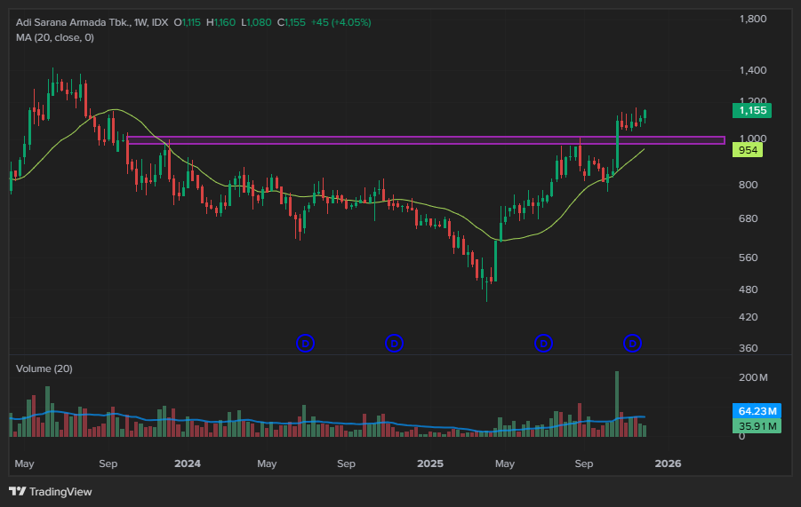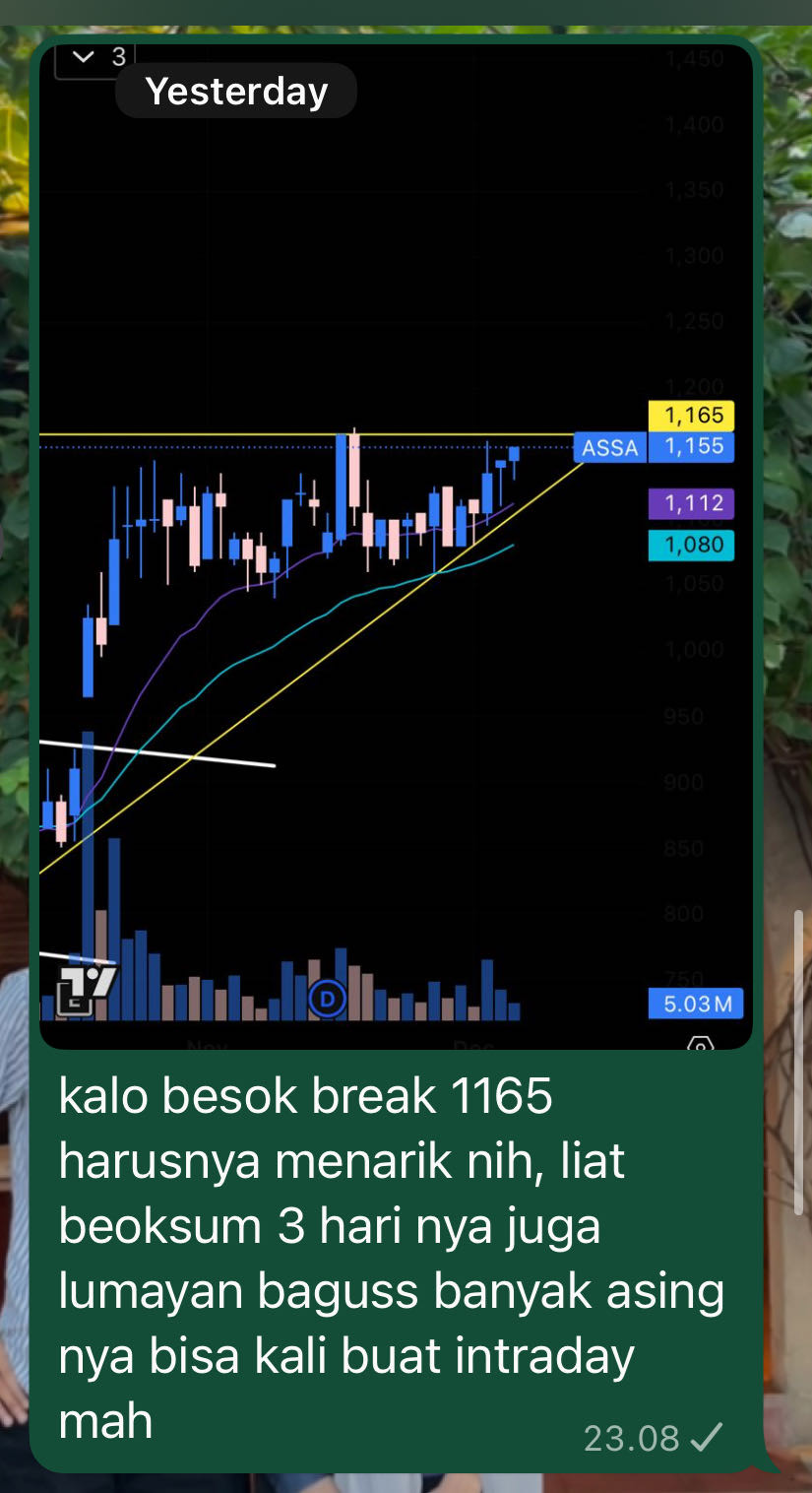 • Area support kuat, cocok untuk entry aman karena ASSA sering bergerak mengikuti sentimen sektor logistik & teknologi