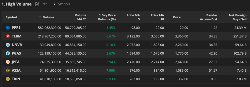 Berapa banyak yang masuk screaning saya? Cuma ada 2 mas. Artinya ini emiten spesial.