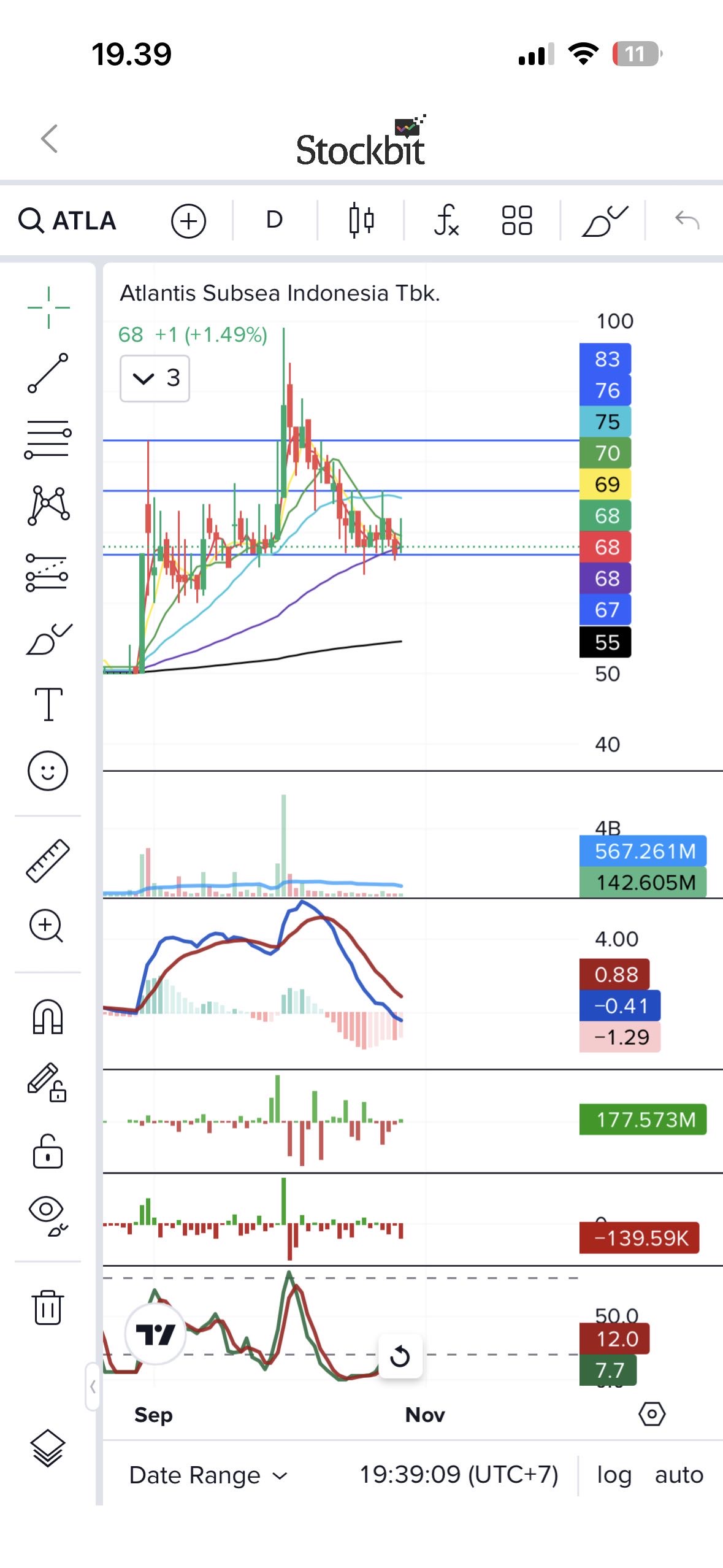 Kesimpulannya jika berani untuk spekulasi buy silahkan dan jika mau WNS jika atla berhasil break 76 juga silahkan.