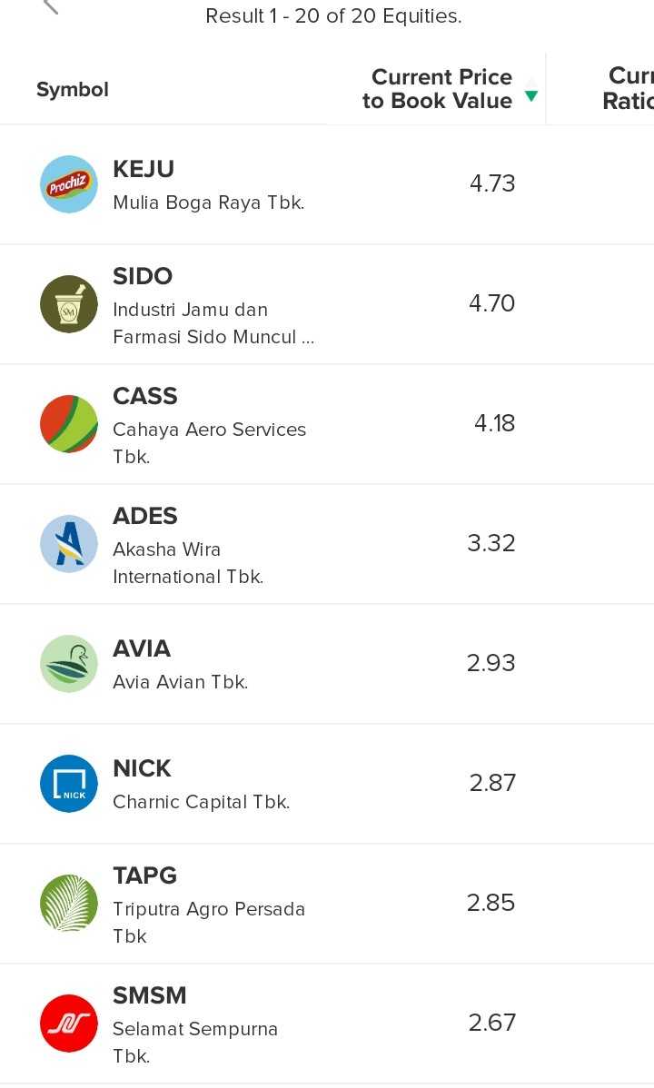 Sementara 16 emiten lainnya PBV nya di antara 2 sampai 5.