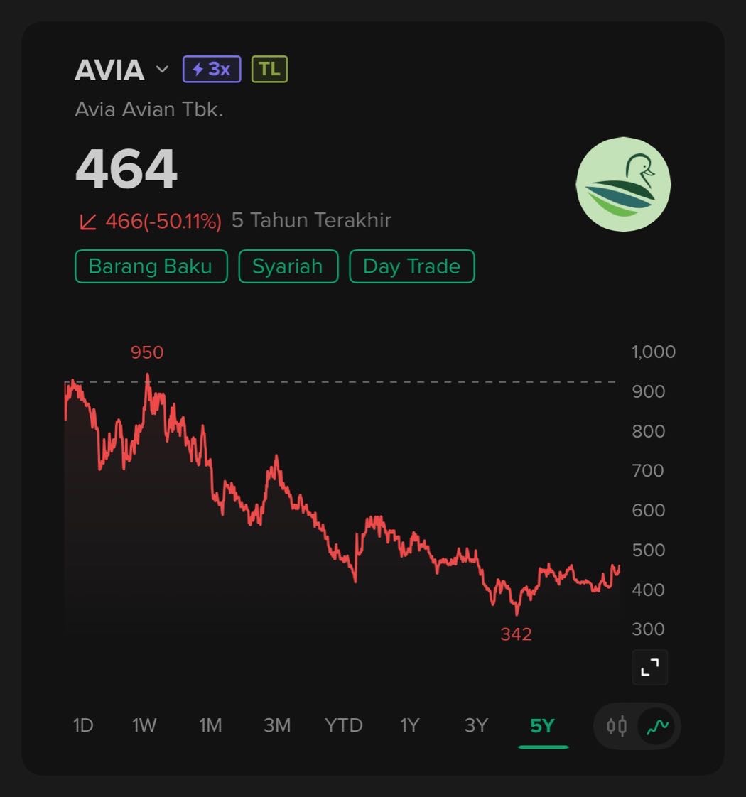 Simulasi kapasitas penuh itu berguna untuk memahami ruang pertumbuhan tapi bukan representasi realisasi tahun pertama pabrik beroperasi. Namun simulasi ini memperjelas bahwa pabrik Cirebon adalah komponen yang sangat besar dalam cerita valuasi AVIA karena bisa mengubah fundamental dari perusahaan dengan pertumbuhan rendah menjadi perusahaan dengan potensi percepatan laba lebih dari 50%. Ini juga menjelaskan kenapa harga saham terlihat sudah optimistis bahkan sebelum pabriknya rampung.