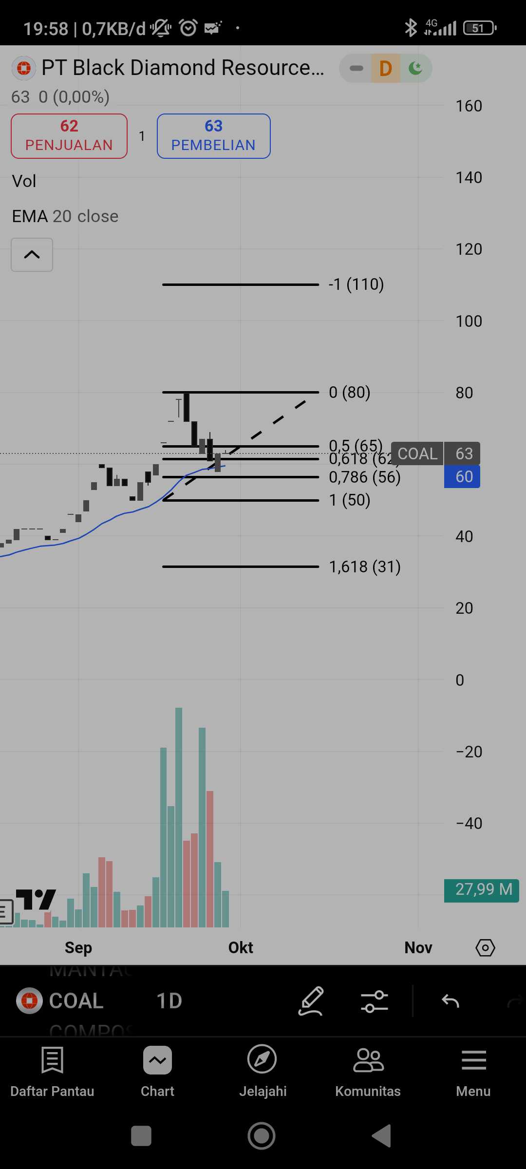 $COAL @Ahmadhdayat bisa pantau klo harga turun ke area 56. $AYAM posisi sekarang lg uptrend dengan posisi sedang berada di support. menariknya dari garis ma nya sendiri lg crossing. mungkin bisa tunggu dulu pantulan atau volume Spike keatas baru jika mau entry bisa dipertimbangkan