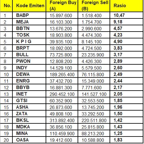 $BABP dan $MEJA -> rasio super kuat oleh foreign