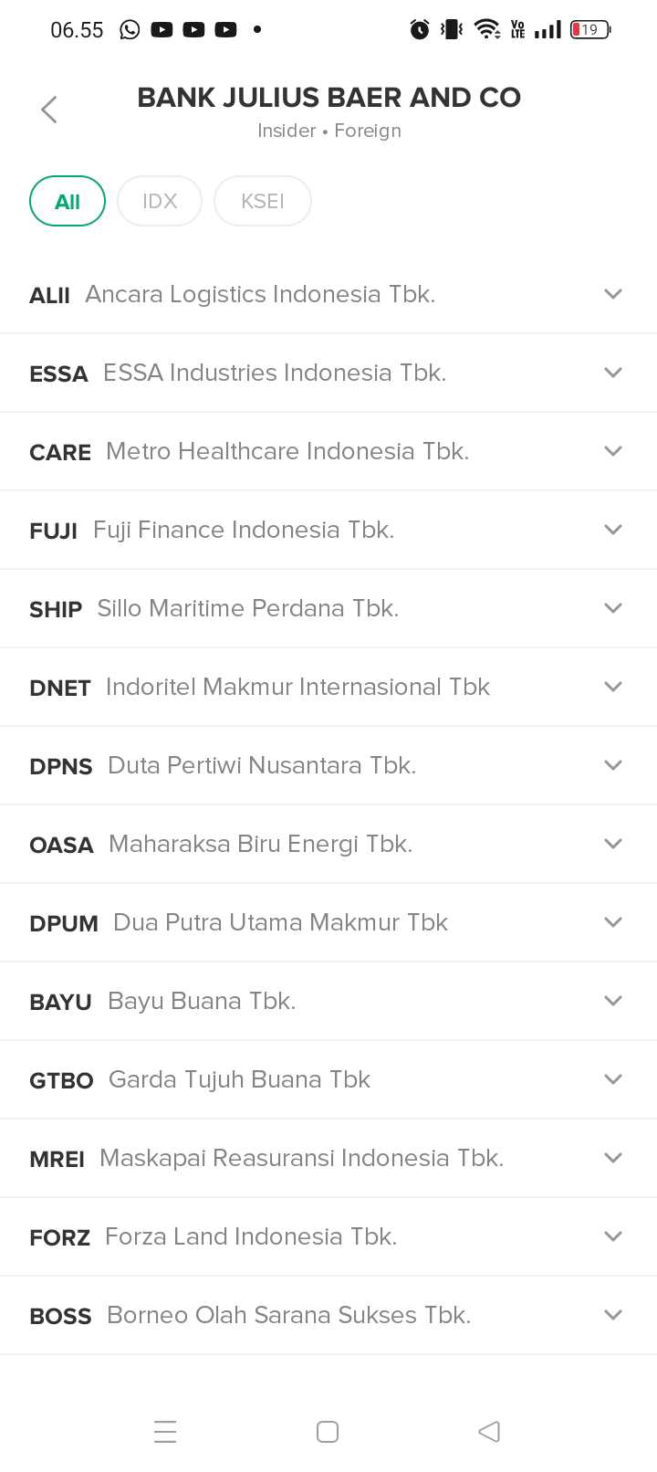 terlampir portofolio investasi Bank Julius Baer and Co berdasarkan pencarian di stockbit