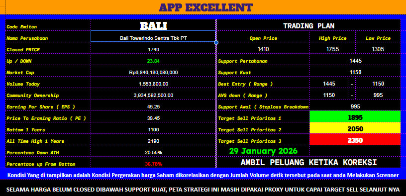 $BALI ini saham sebenarnya bagus, dr fundamental, share holder, bidang usaha juga..data center , BTS dan FTTH