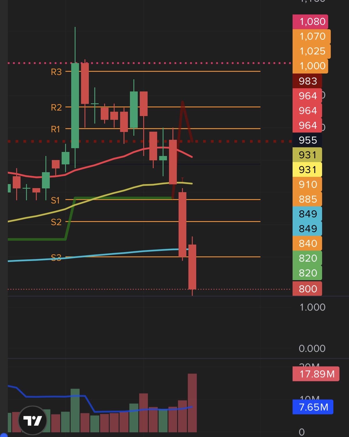 $BANK chartnya lumayan jelek, support terkuat udh jebol volume buangan hari ini juga cukup besar , belum ada sinyal buy , semoga bisa mantul di atas 820 lg .