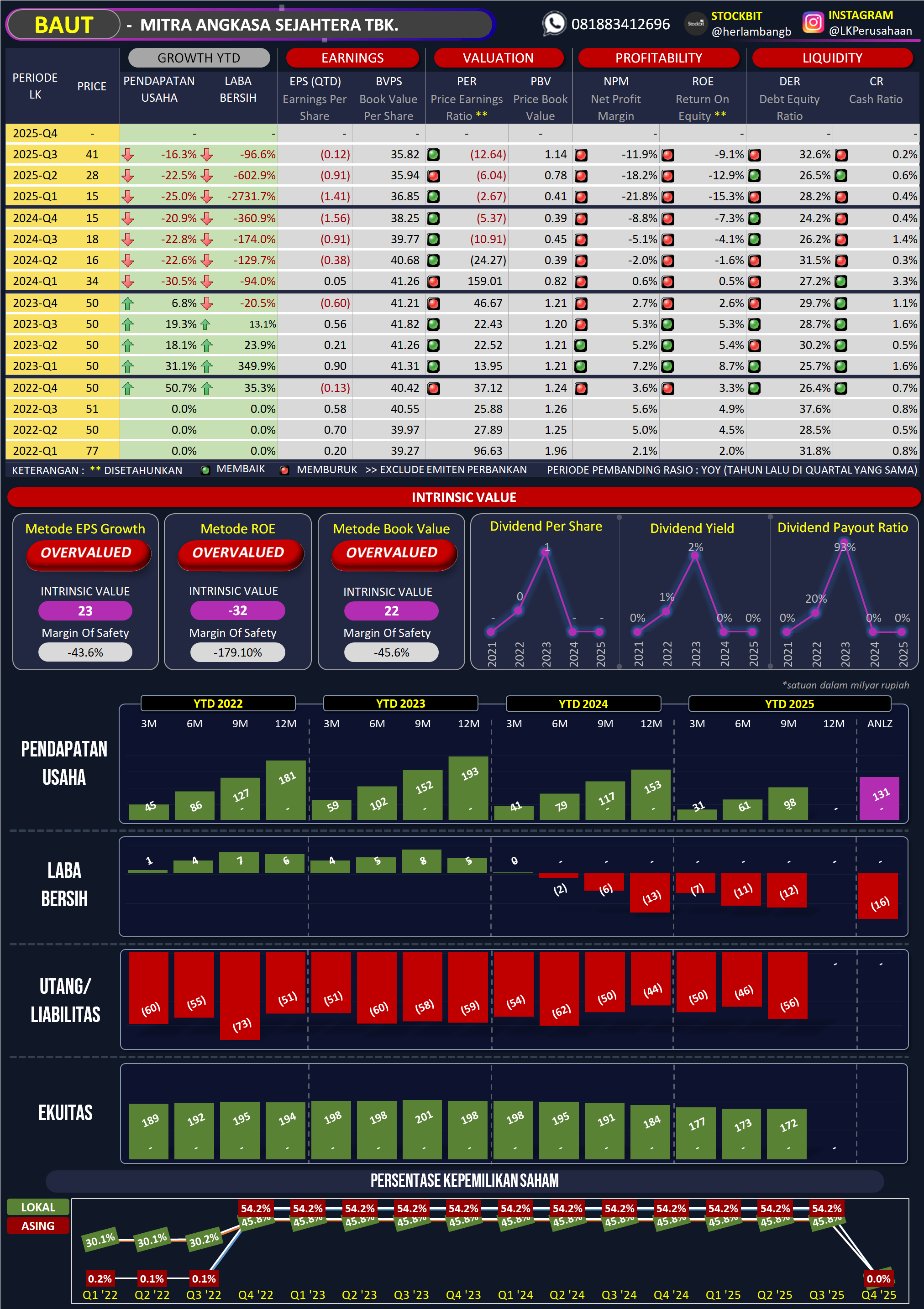 $BAUT Harga berbanding lurus dengan profitnya. Pantes naik terus. Gas terus pak direktur.
