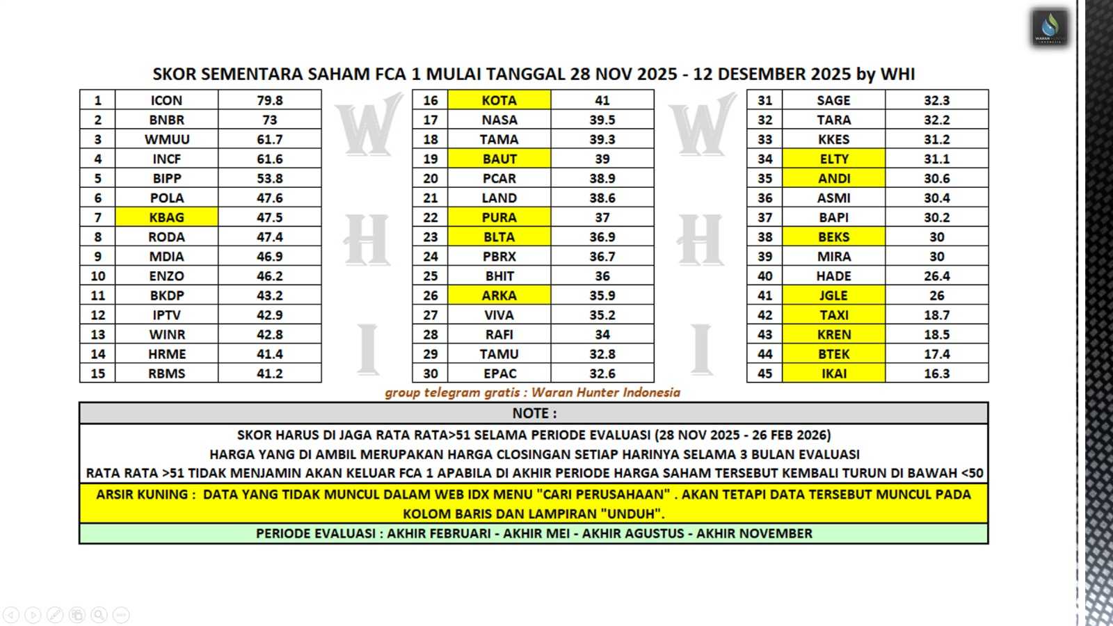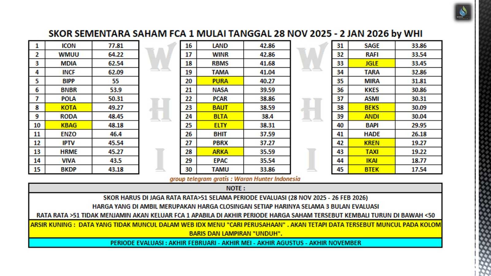 🔰update skor sementara saham FCA Kriteria 1