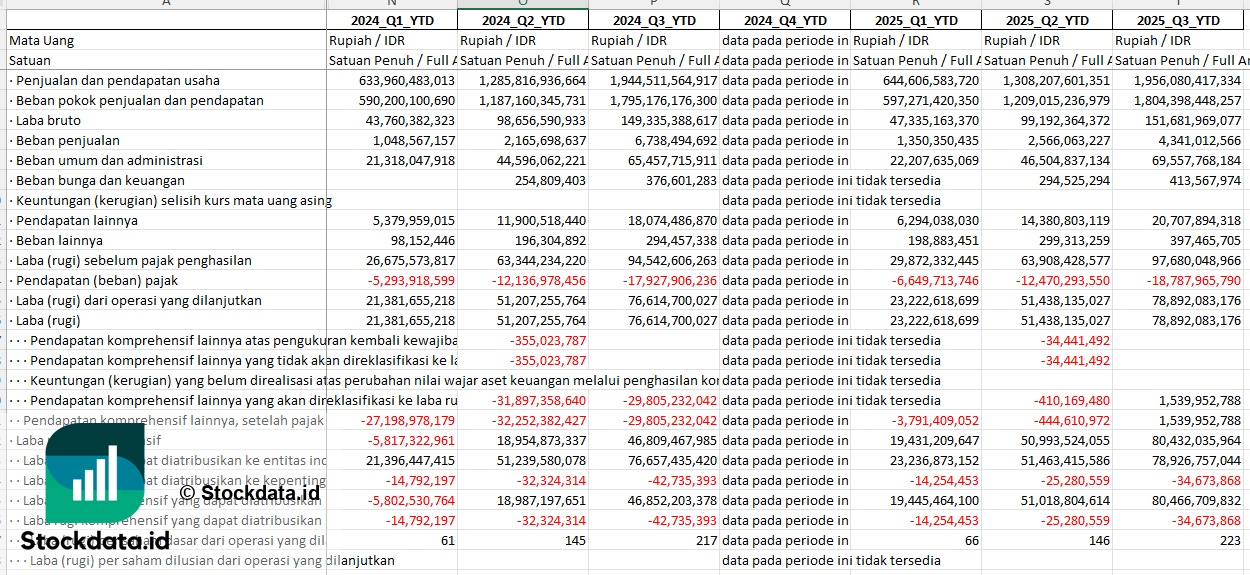 1. Pendapatan: Total Pendapatan mencapai Rp1.956.080.417.334 per 30 September 2025, meningkat tipis dari Rp1.944.511.564.917 pada periode yang sama tahun 2024.