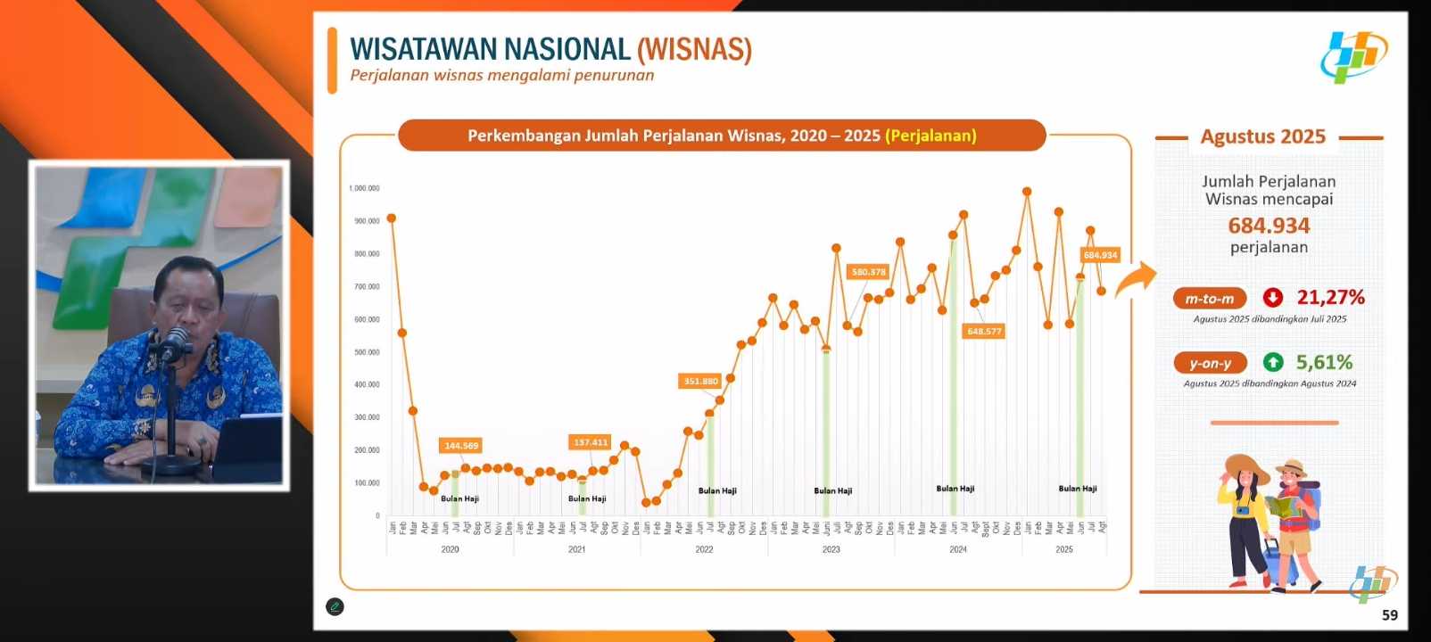 ➖ Perjalanan Wisnas (dari dalam ke luar negeri) Juli mencapai 869.927.