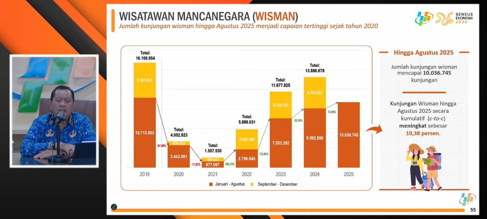 Secara kumulatif, Jan-Ags 2025 perjalanan wisnas masih naik tipis +2,21% ctc.