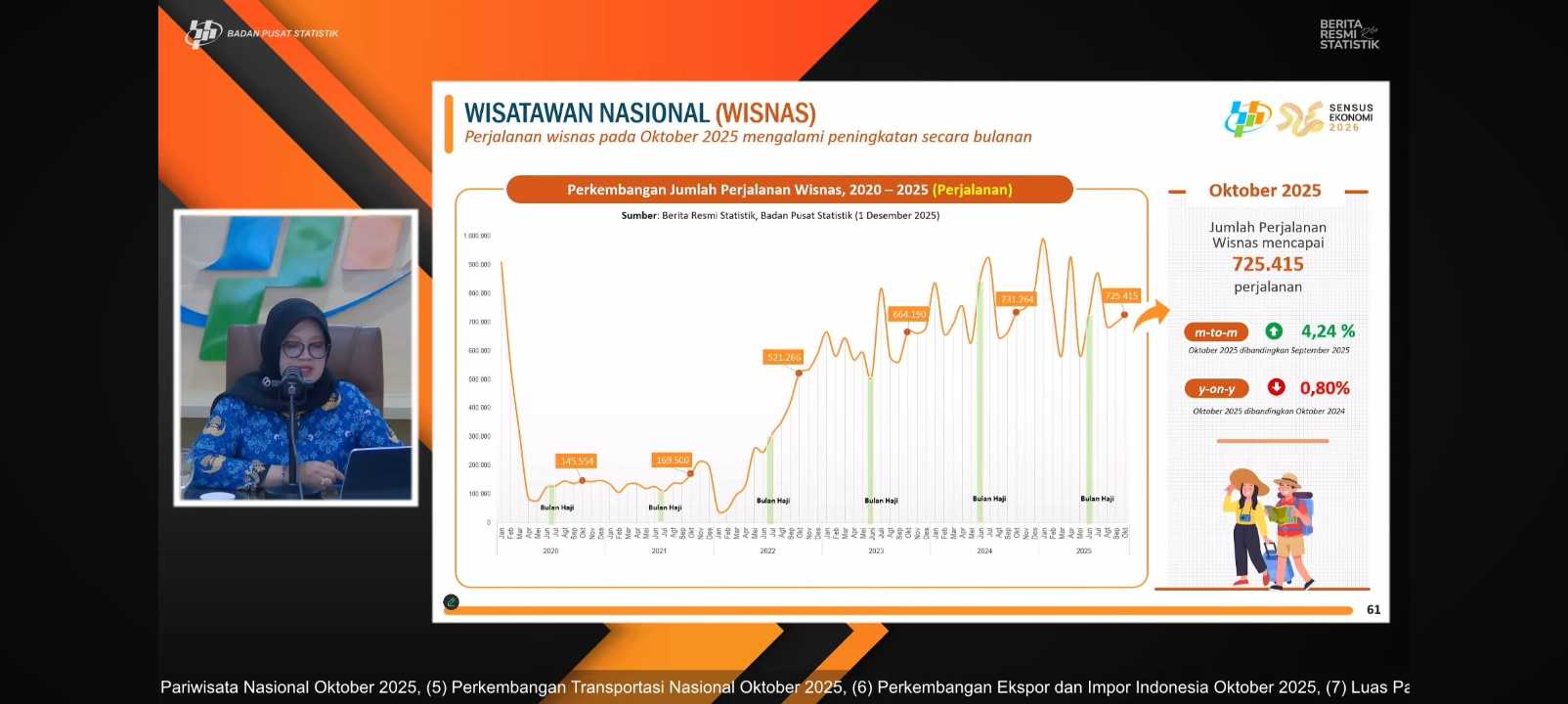 Secara kumulatif Jan-Okt 2025 kunjungan wisman mencapai 12,76 juta.