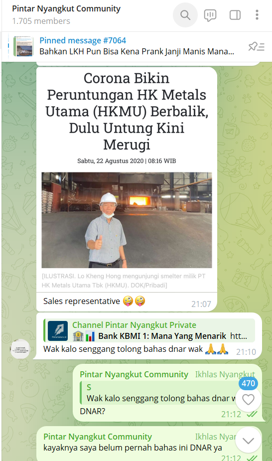 Untuk diskusi lebih lanjut bisa lewat External Community Pintar Nyangkut di Telegram dengan mendaftarkan diri ke External Community menggunakan kode: A38138