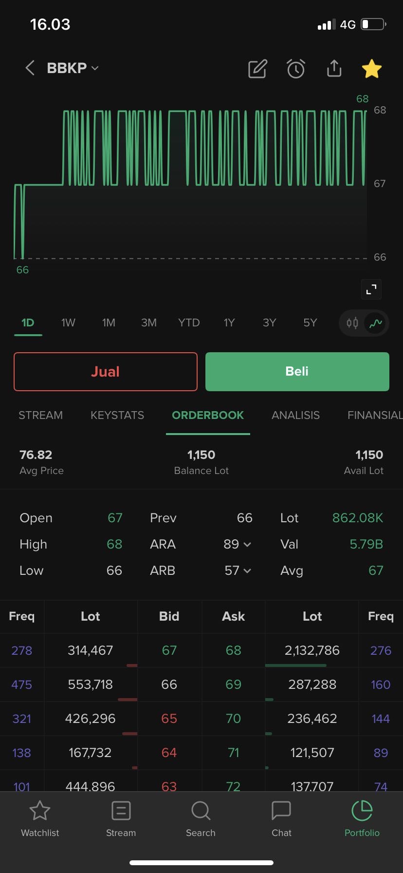 $BBKP Gile saking frustrasinya di pagerin 2,1 Jt lot gara2 si bandar mau tarik turun tapi retail pengen naik , di tembok di 70 gak puas langsung tembok tebel di 68 wkwkkw