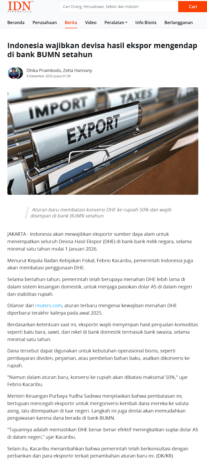 *REPORT TRANSAKSI ARUS DANA EMITEN BANK, 11 Des 2025*