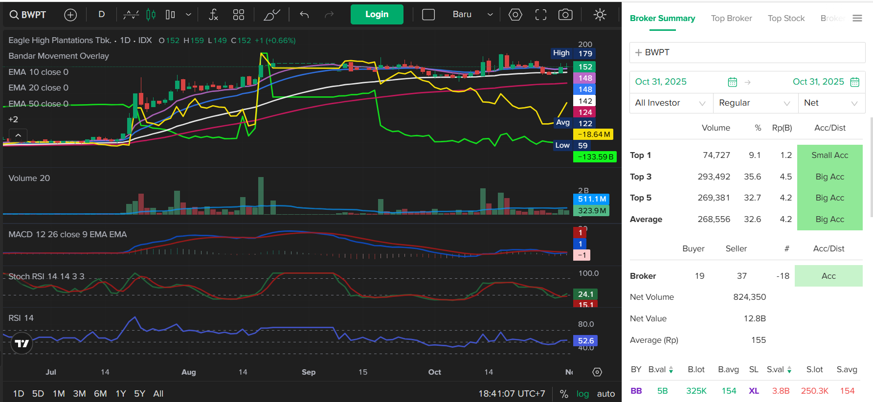 Saham saat ini mengalami konsolidasi kecil dalam kisaran 148 – 159.