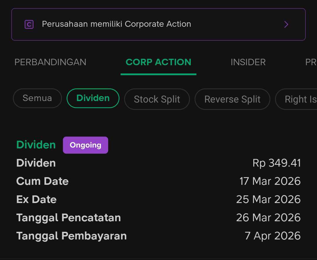 berdasarkan sejarah bbca harusnya juga bagi dividen bulan ini, kemungkinan besar barengan bbni atau paling telat akhir bln maret, cocok buat jajan beli gorengan, cmiw 🤭