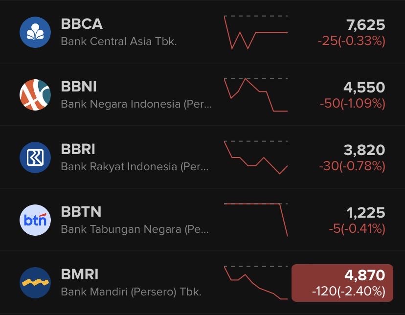 padahal $BMRI yg paling okeh segalanya di banding $BBNI sama $BBRI tp malah turun ya lumayan, se akan kaya ada yg mau ambil di harga bawah dulu ga sih -_-