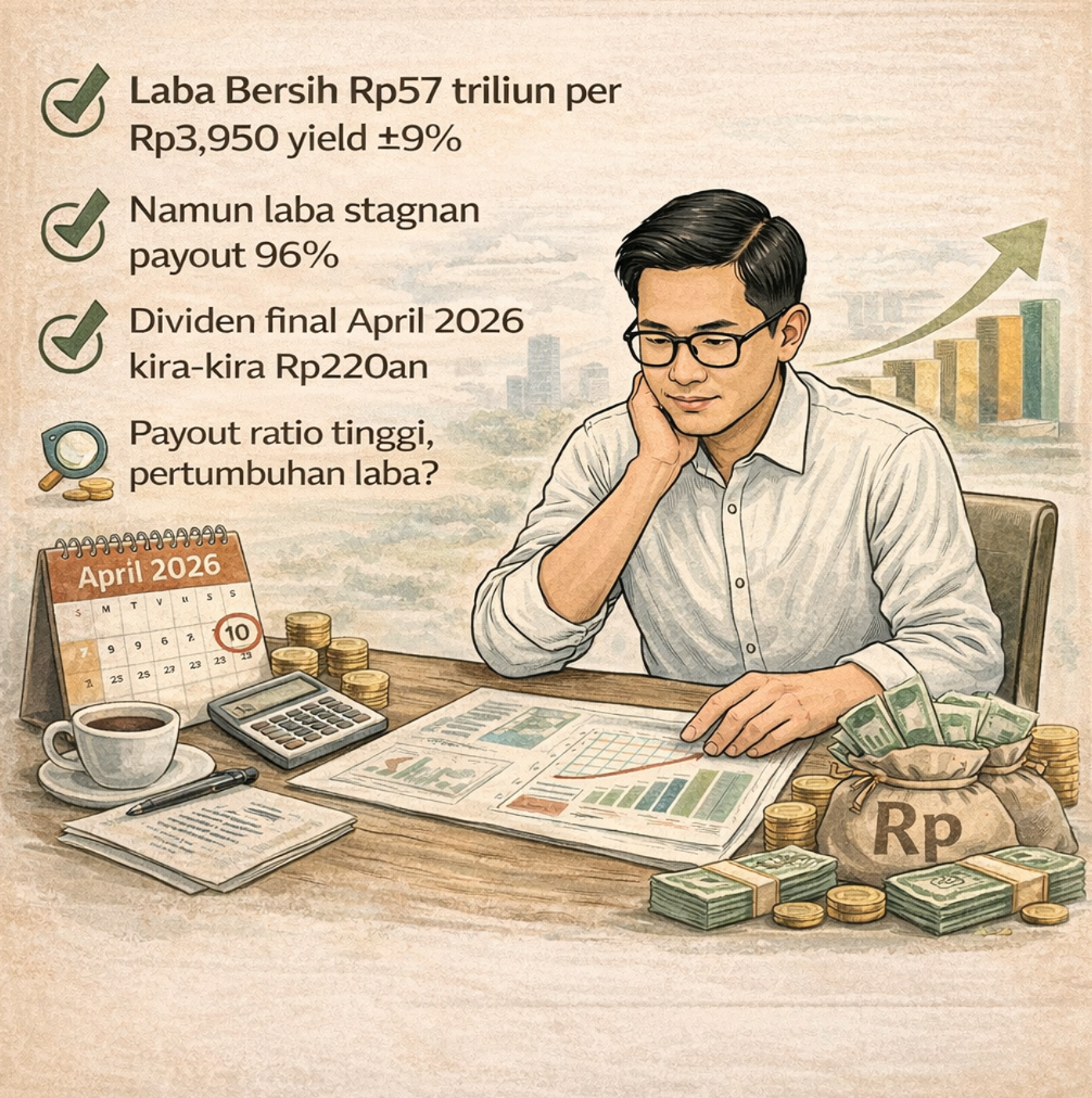 • Estimasi Cum Date: Diprediksi kuat jatuh pada Minggu ke-3 atau ke-4 April 2026. Siapkan jaring kalian di sini jika kalian mendewakan dividend yield tinggi di atas rata-rata bank besar.