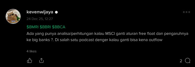 Dengan keluar pengumuman ini manager investasi asing langsung bereaksi dg mengurangi portofolio mereka di emiten yg bobotnya besar seperti $BBCA dan $BBRI, cerita selanjutnya semua sudah tahu dan tak perlu kutulis lagi...
