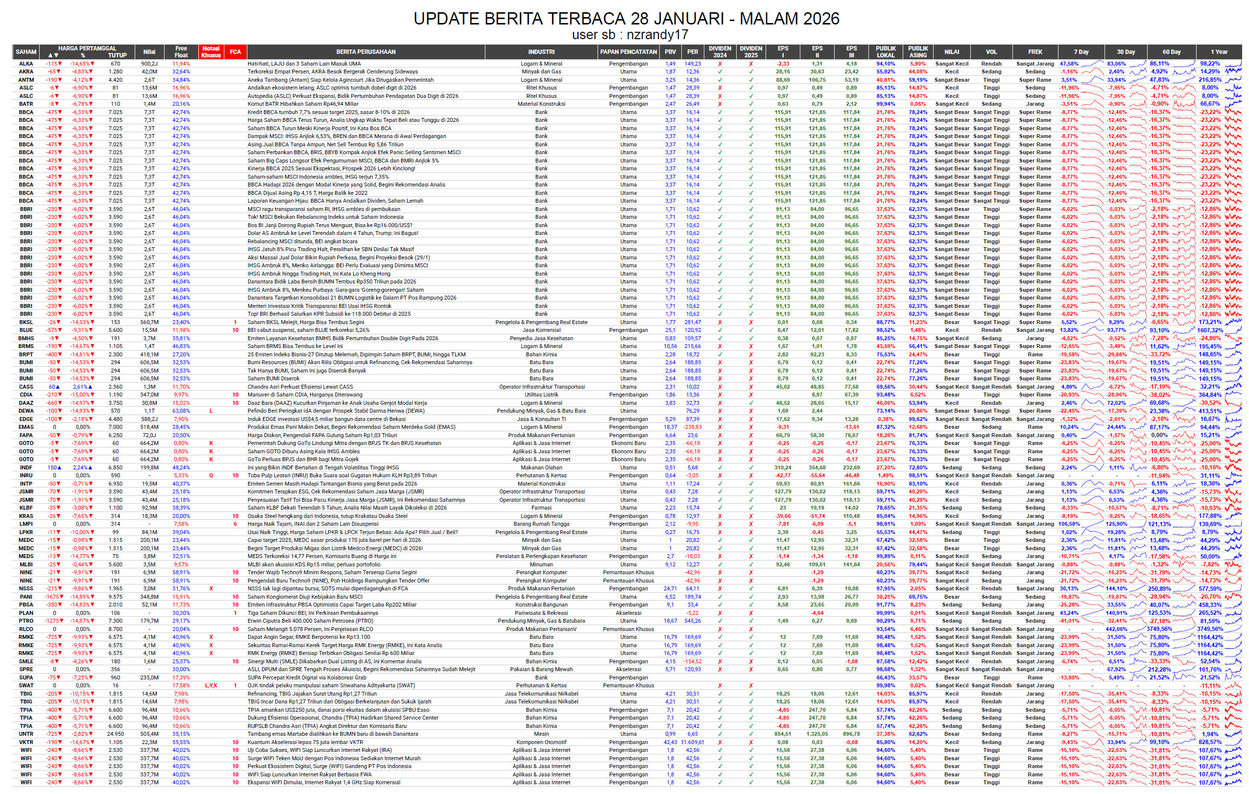 Terpantau Warga King XL Borong $BBCA $BMRI $BBRI Hari ini 28 Januari 2026