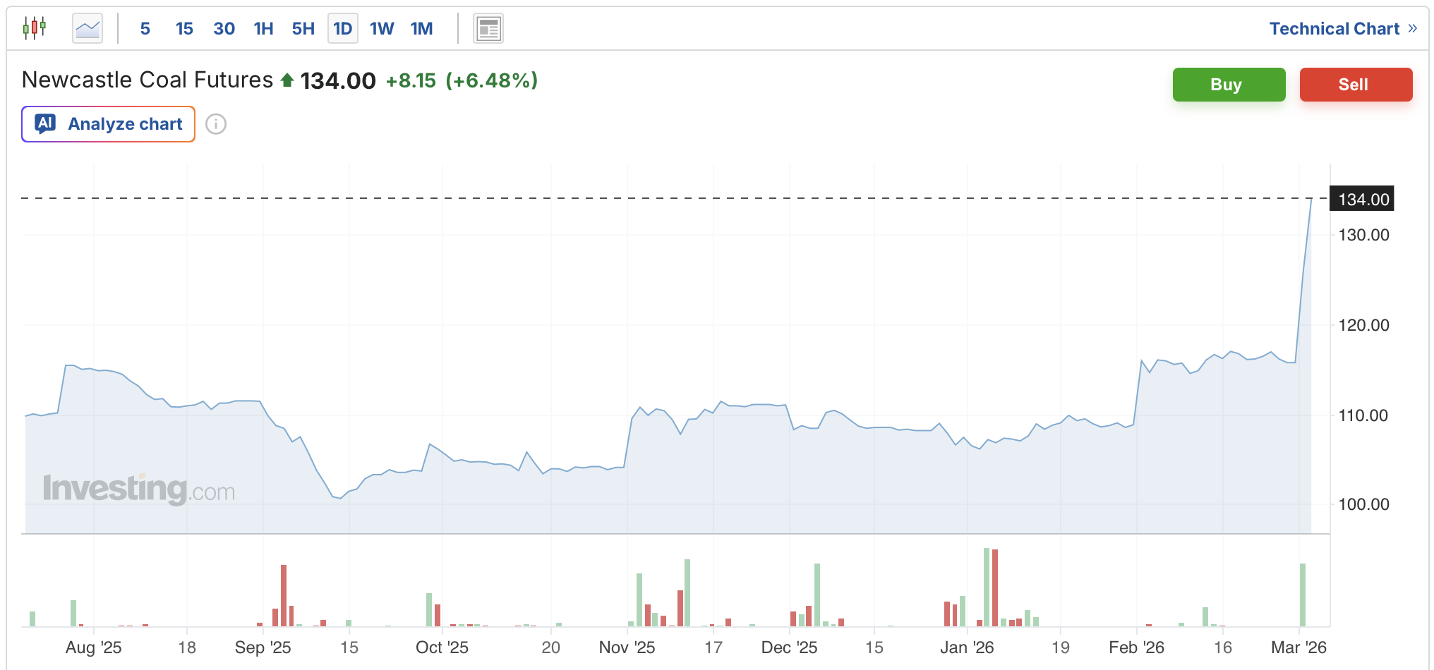 Harga batubara naik terus. Hari ini udah capai 134 aja. Kalau kejadiannya seperti 2022 waktu Rusia menyerang Ukraina maka harga minyak dan batubara (sebagai substitusi murahnya) akan naik. Wkt itu sih harga batubara sampe tembus 400 (seharusnya kali ini gak sampe segitu deh). Semoga 🌏 segera tenang dan damai lagi... 😔