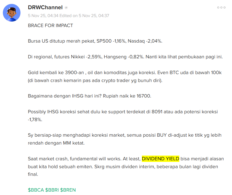 $BBRI ada dividen interim, santai ijo juga