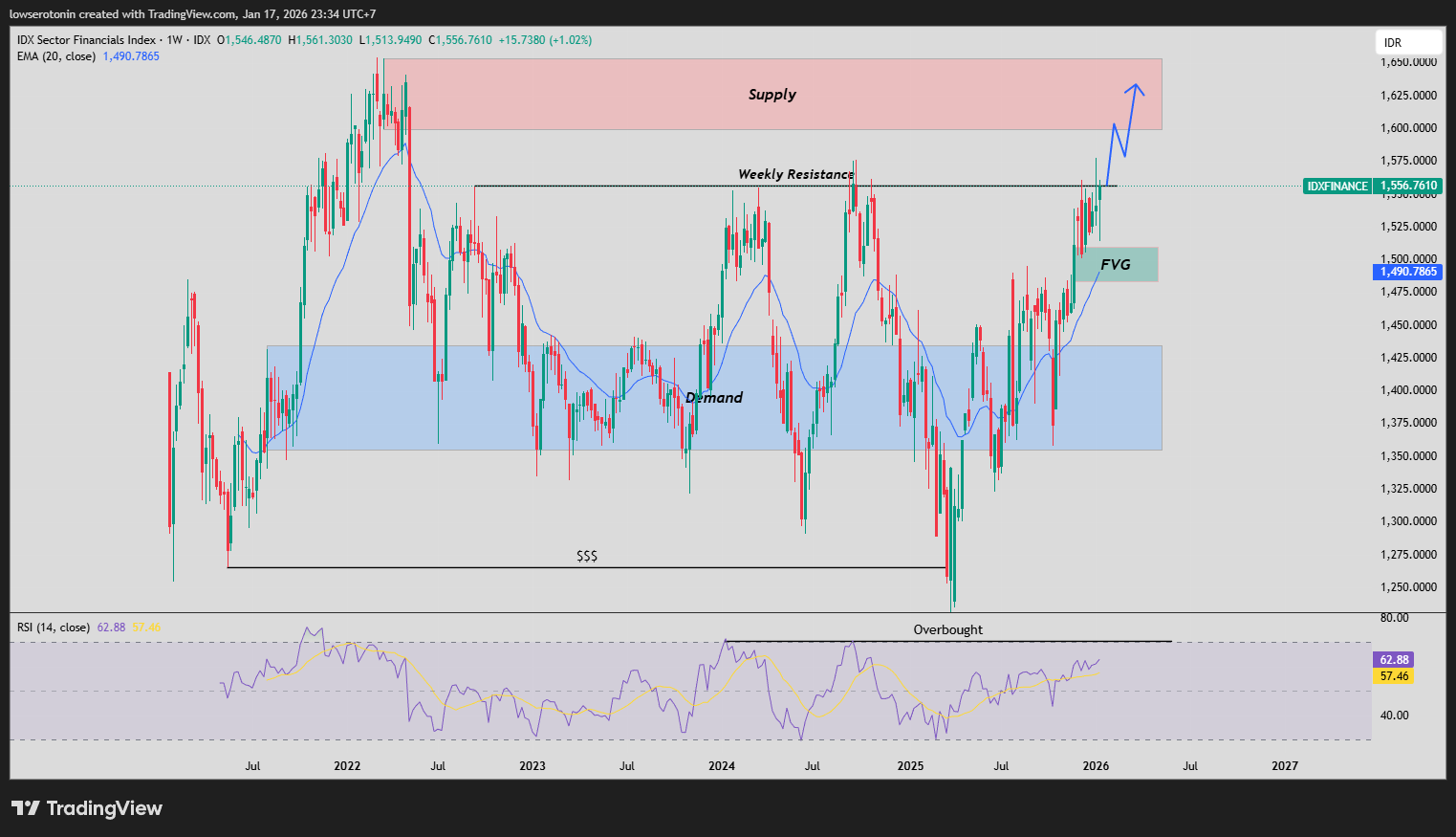Ditambah kondisi IHSG mulai masuk area overbought, akankah giliran sektor finance terutama big bank mendorong IHSG?