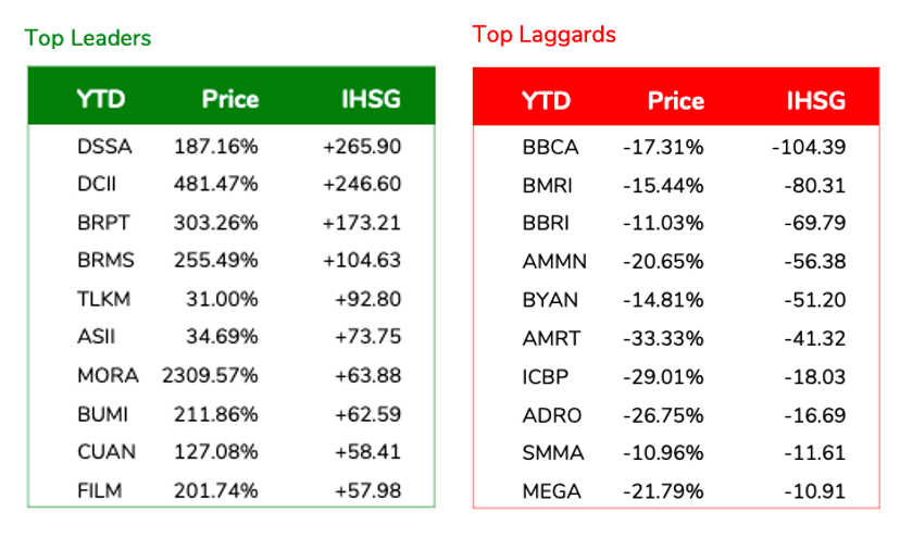 Namun ternyata, kenaikan IHSG terdorong oleh naiknya beberapa saham dengan valuasi harga saham yang sudah tinggi. Dimana kenaikan IHSG didorong oleh saham DSSA, DCII, BRPT, dan sebagainya.