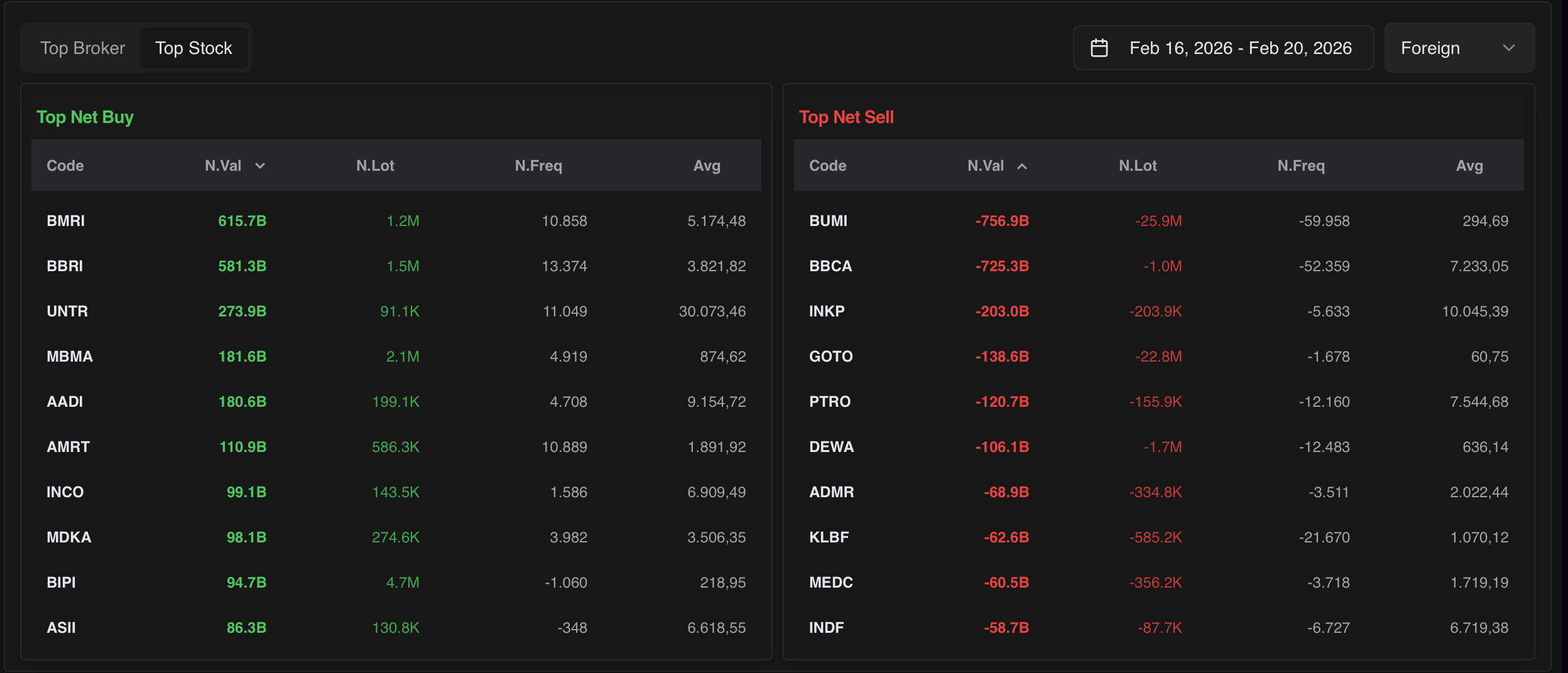 KABARBURSA.COM – Saham PT Bank Rakyat Indonesia Tbk (BBRI) memimpin daftar net foreign buy pada perdagangan Jumat, 20 Februari 2026.