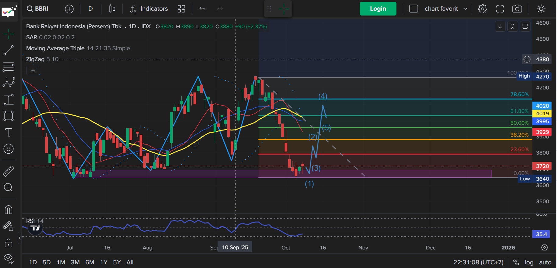 Belum oversold, jadi ruang penurunan masih terbuka sedikit lagi sebelum pantulan.